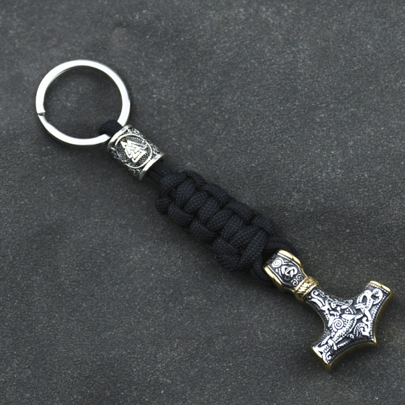Le Porte Clef Thor Paracorde se démarque par son design inspiré du marteau légendaire de Thor, Mjölnir, symbolisant la force et la protection.