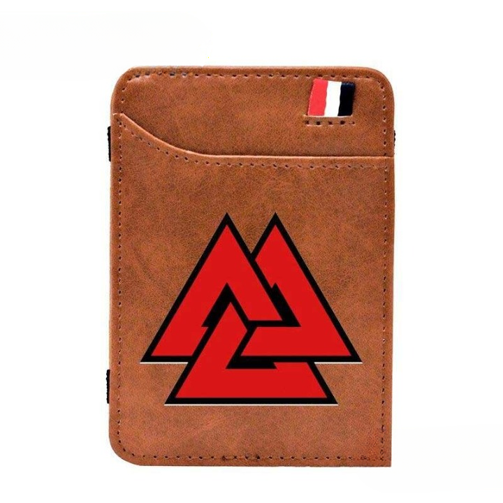 Le Portefeuille Viking Français – Valknut se distingue par son motif Valknut délicatement gravé sur le cuir, symbolisant la connexion entre les mondes et la bravoure des guerriers vikings.