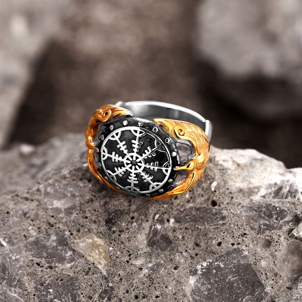Avec cette Bague Viking Corbeaux Gardiens du Vegvisir, vous ressentirez le poids des légendes, comme si les oiseaux gardiens eux-mêmes vous accompagnaient dans votre quête spirituelle.