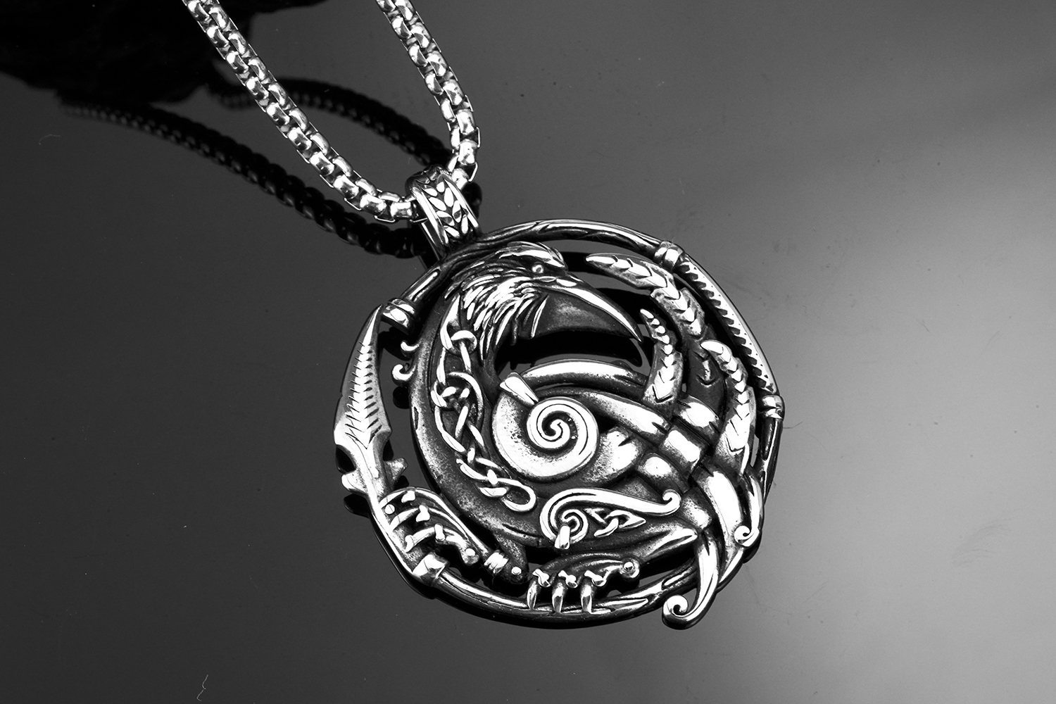 Ce collier viking a été conçu pour inspirer une connexion plus profonde avec votre intuition et sagesse, évoquant le corbeau d’Odin qui est le messager entre les mondes.