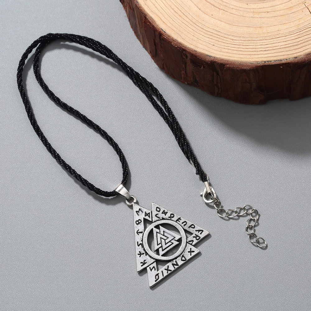 Orné de runes scandinaves et du symbole Valknut, ce collier viking en acier inoxydable est un trésor de détails, créant une profondeur de sens et une beauté complexe.
