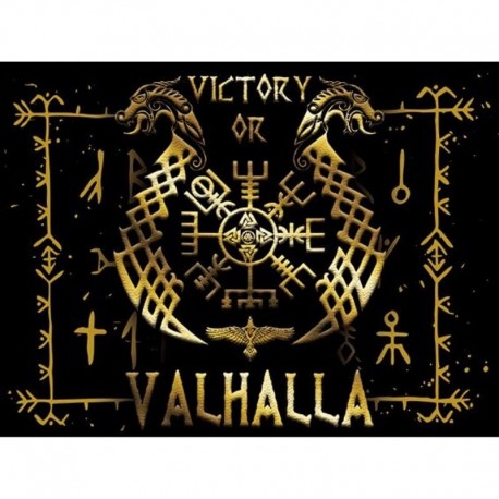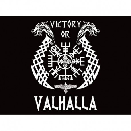 Le design du Drapeau Viking Victoire Valhalla est centré sur le symbole de Valhalla, évoquant la grandeur et le succès dans la bataille.