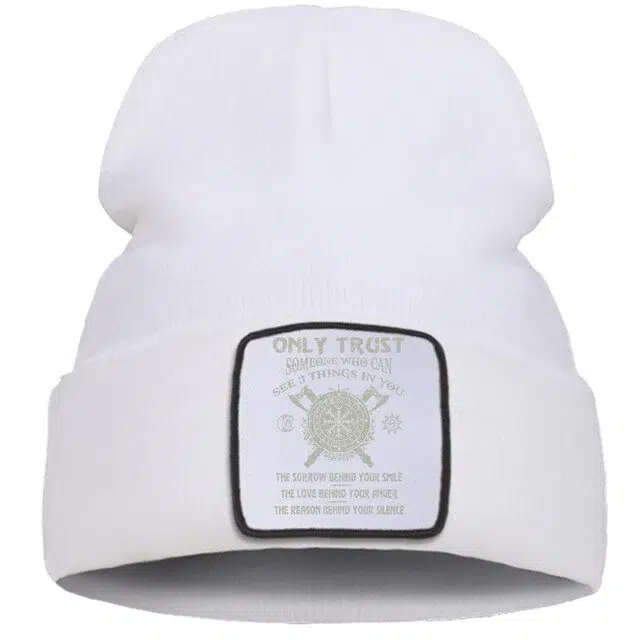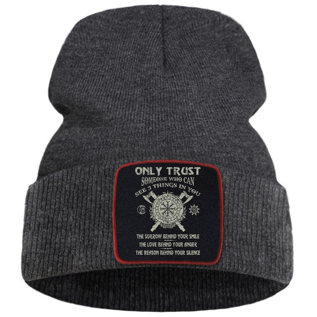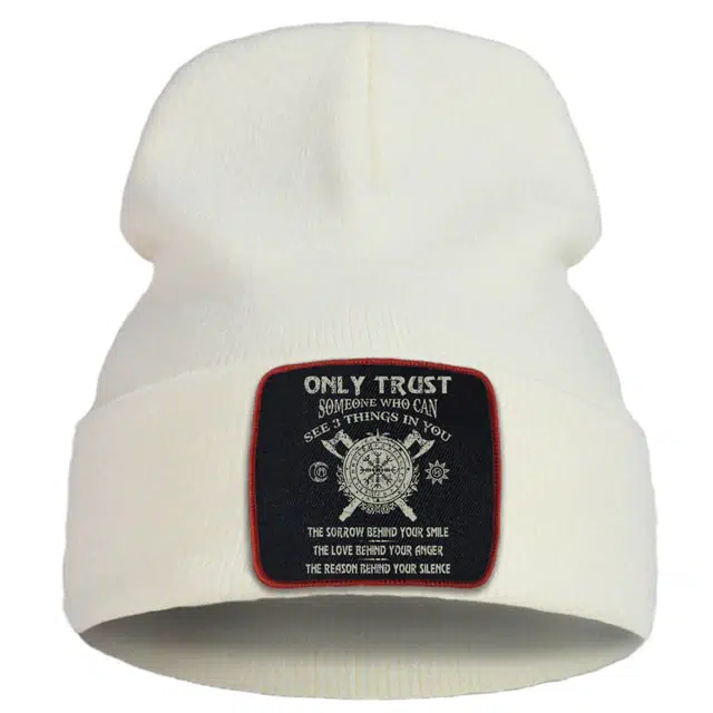 Le Valknut est le cœur de ce bonnet, trois triangles entrelacés symbolisant la vie, la mort et la renaissance. Une amulette de tête pour l’homme moderne, bravant la vie urbaine avec une touche de bravoure viking.